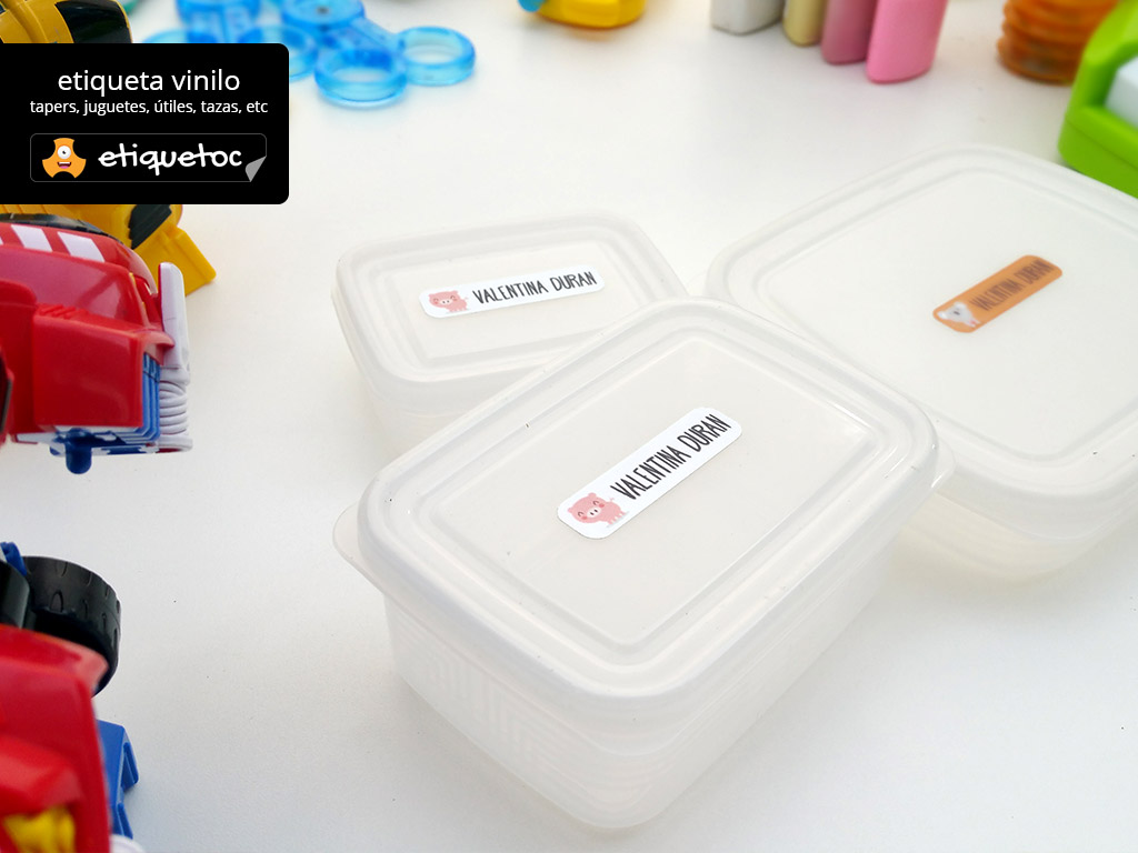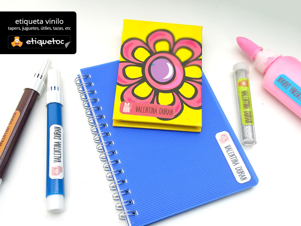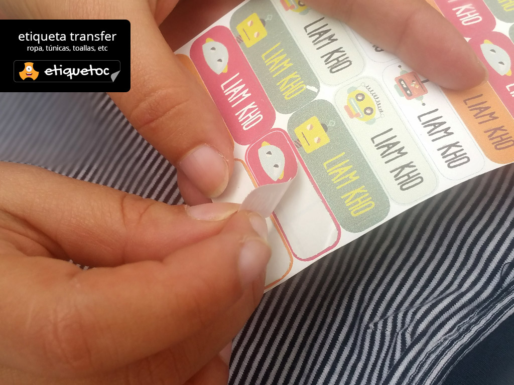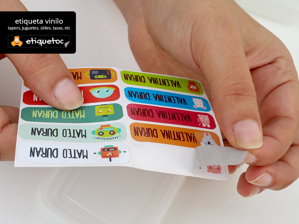 Con etiquetoc puedes diseñar etiquetas personalizadas de la forma más rápida y simple. Las etiquetas son de dos tipos, vinílicas laminadas para en útiles escolares, loncheras, cuadernos, zapatillas etc y transferibles para utilizar en ropa, delantales, bolsos, etc.