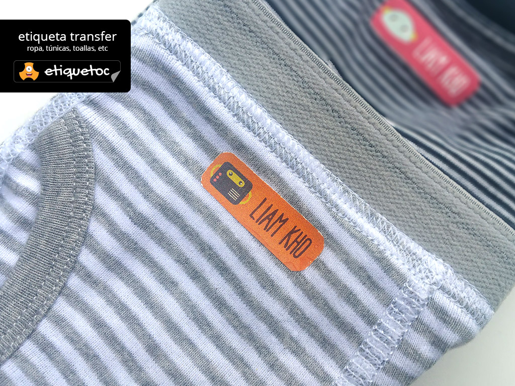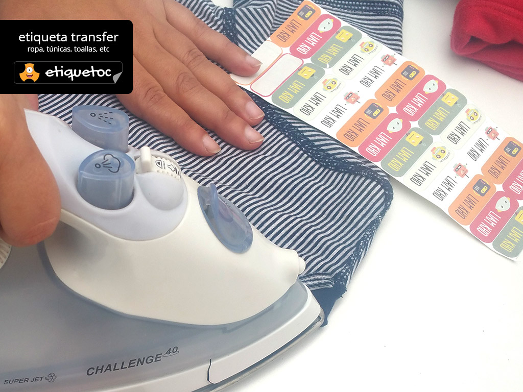 • Las etiquetas transferibles son apropiadas para tela o ropa, se fijan utilizando una plancha y son ideales para todo tipo de prendas de tela, algodón, sintético, lana, etc. El material es de alta durabilidad y resistente sin inconvenientes lavados tanto a mano como de lavarropas. Para mayor información ver el video de instructivo de planchado o el de prueba de resistencia.