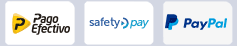 Los métodos de pago aceptados son Visa, MasterCard, American Express, Diners, PagoEfectivo, Safetypay y Paypal
